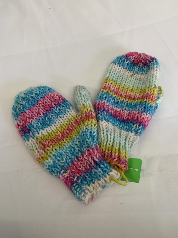 Gear: Youth, Pink/Blue/White Crocheted Mitten