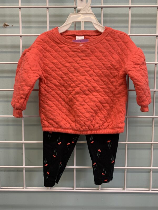 Color: Orange Top, Black Pant with Orange Floral Print