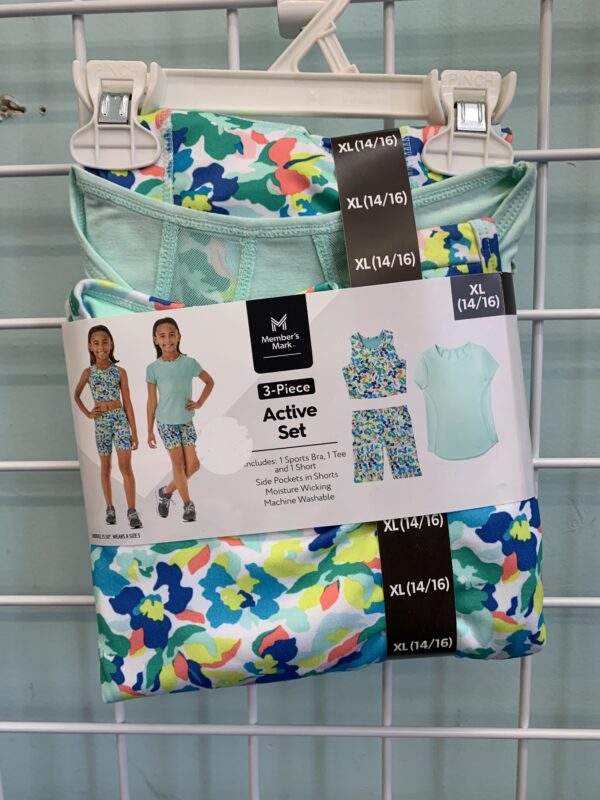 Includes: short, shirt, sports bra